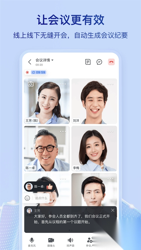 “飞阅会”助力高效开会:会前能高效预约会议时间,会中可默读共享文档并实时评论协同,会后音视频内容能智能转写为笔记。