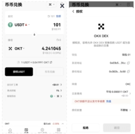 另外,对于未授权或授权额度不足的币种,您须首先点击「授权 」按钮发起授权申请,在钱包中确认并完成授权后,才可进行下一步交易。