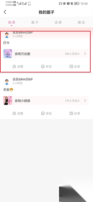 二、在动态中选择你要删除的帖子