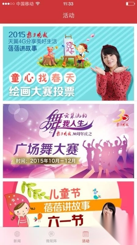 活动推荐:系统与大数据云端平台对接,智能化地向用户推送本地各类活动,无论规模大小。