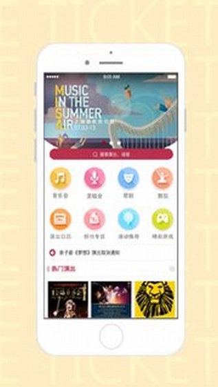 全品类的文化项目--音乐(会)剧、演唱会、话剧、歌剧舞蹈、儿童亲子、赛事展览的购票服务,在线选座、电子票、会员专享价、紧俏票、海量折扣票,轻松搞定!