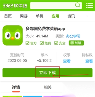 1、在本站下载并安装多邻国免费学英语