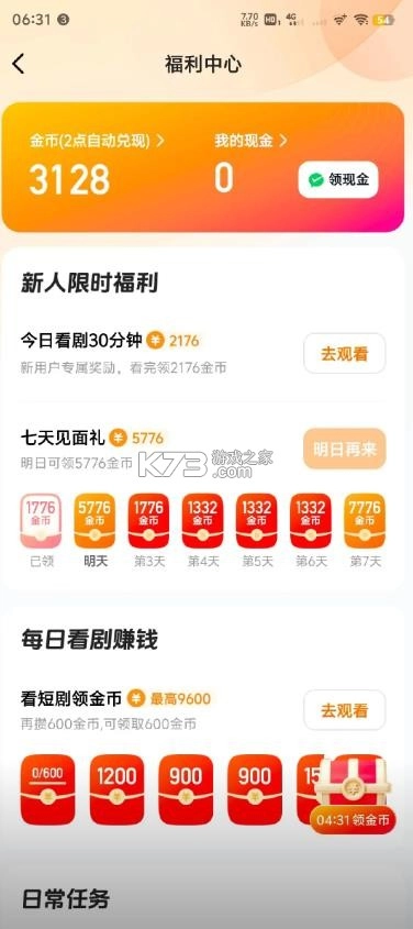 需要使用手机号码登录,看短剧也可以领取金币奖励了。