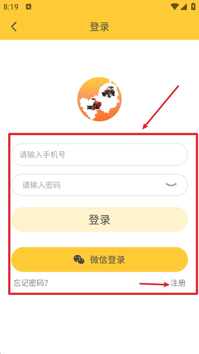 1. 开启App后,进入登录界面,输入手机号码和密码,也可选择“微信登录”来完成账号认证。