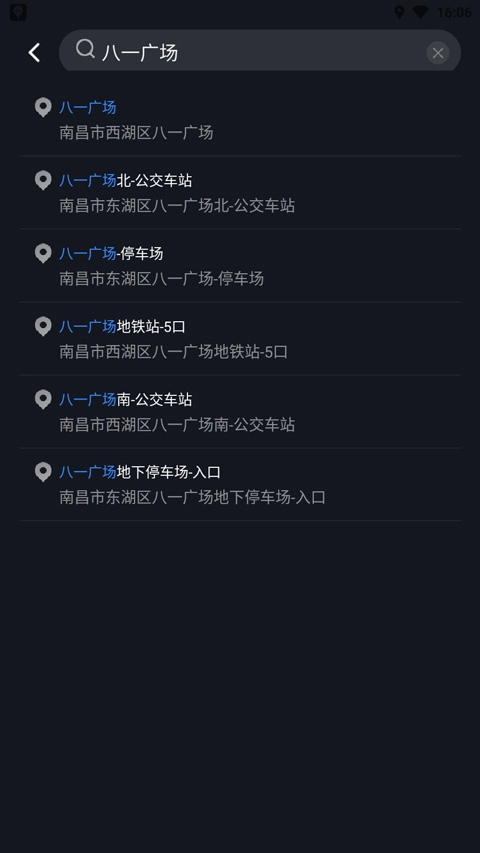 3、此外,该软件具备搜索功能,只需点击右上角的搜索按钮,然后输入地点,例如“八一广场” 。