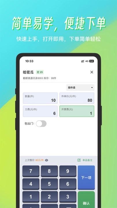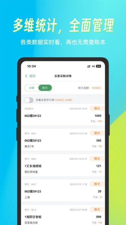 菜小秘APP是为农批商提供日常经营管理服务的软件,软件拥有财务管理,数据统计,高效协同,贴心客服等等诸多功能服务,在软件中为农批商提供了非常全面的经营管理服务,用户可以随时在线进行办公使用,账单可以一目了然清晰可以,系统会将账单信息进行永久记录,用户可以在线完成货品开单操作,提供有码单管理服务,其中还会将买家交易的信息进行实时推送通知,有需要的用户就快来下载!