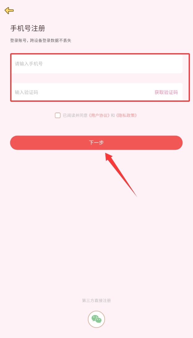1. 初次打开应用,认真阅读用户协议,随后点击底部“同意并继续”按钮,进入注册流程。