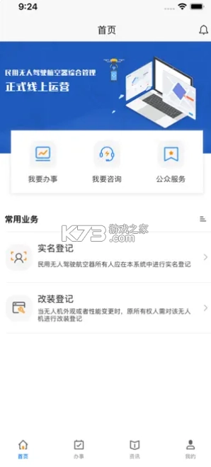 6、主要功能涵盖无人机实名登记、变更登记、注销登记、无人驾驶证申请以及电子证件等。