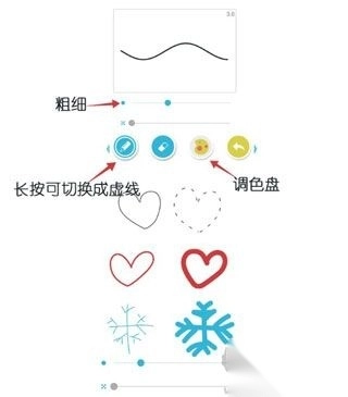 1、滑动控制线条粗细,左滑变细,右滑变粗;