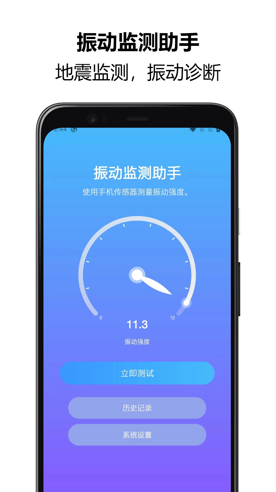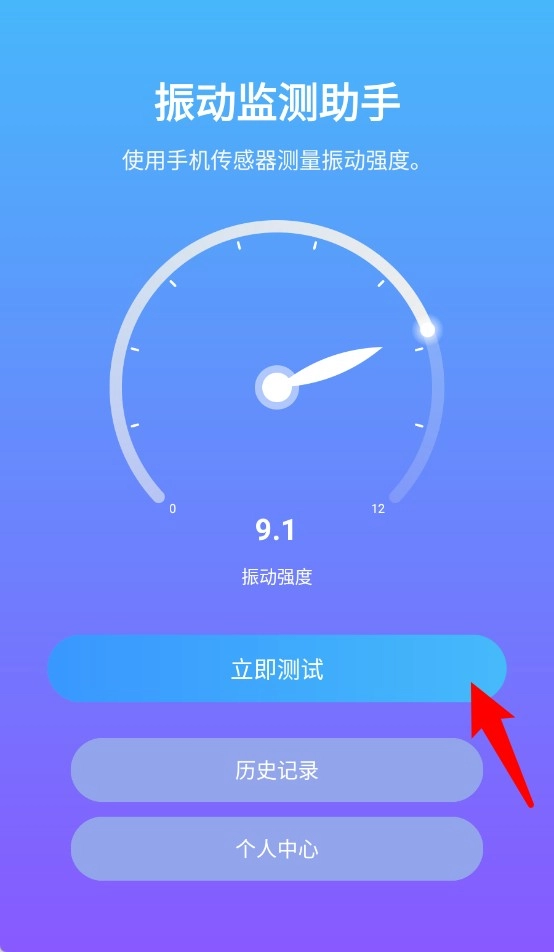 1、点击“立即测试”可快速开启手机传感器检测振动数据。