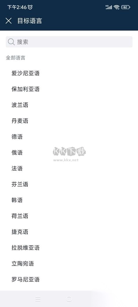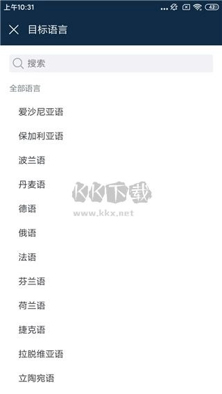 3、随后挑选你想要翻译的目标语言,像德语、波兰语、俄语、丹麦语、英语、韩语、法语、日语等众多语言。