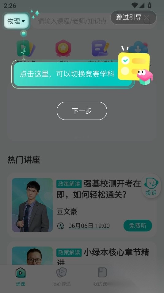 专注于物理、数学、化学、生物这四大学科竞赛,推出由蔡子星、孙鹏等名师录制的知识点详细讲解短视频,同时配备「每日一题」挑战以及U/G系列模拟试卷。