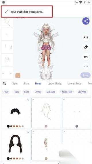 3、等待系统处理,上方显示 “Your outfit has been saved” 提示,即保存成功。