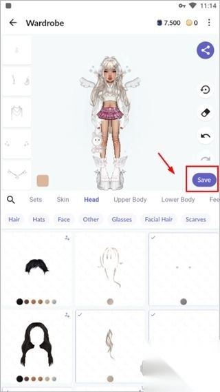 2、自由搭配服装、配饰完成角色创作,点击右侧 “Save” 按钮;