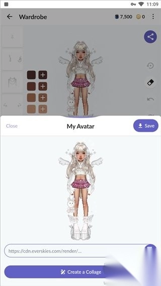 7、创作完成后,可将角色形象分享至社交平台展示;