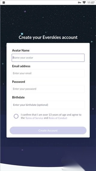 3、填写用户昵称、账号邮箱、密码及生日信息,同意用户协议后提交;