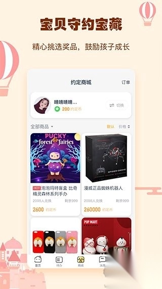 宝贝完成任务赚积分,兑换心仪小礼物,让成长变成开心游戏。