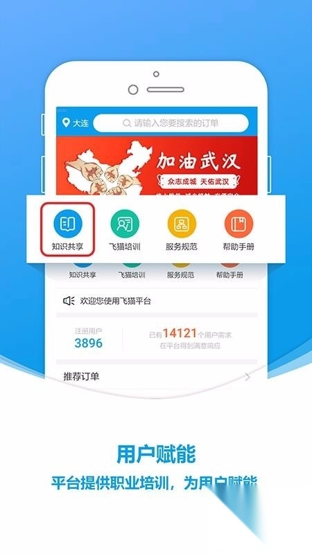 用户能够选择飞猫培训、服务规范以及帮助手册等功能。