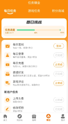 3、在游戏平台完善个人信息后,即可一次性获得10积分