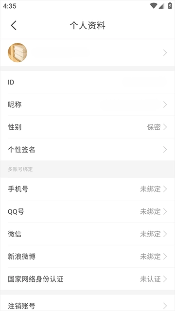 1、在“我的”界面点击用户头像,进入个人信息界面