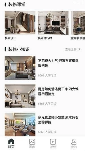 3、软件首页涵盖装修课堂与装修小知识等内容,每一项皆是干货满满,能为新人带来强烈的知识冲击。