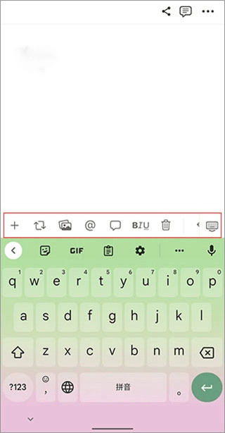 2、进入编辑界面后,先输入标题内容,接着点击下方的文本区域,此时能看到输入法上方弹出工具栏。