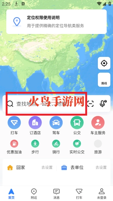 2. 进入之后,点击此处,输入你想去的地点即可,届时会有诸多路线推荐。