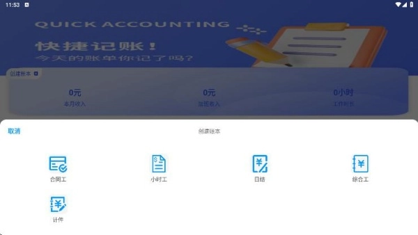 2、为了保证每笔账目分类展示,可以创建合同工、小时工等不同的账本。