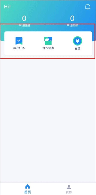 1. 打开溪鸟,在首页能够查看待办任务、合作站点以及充值选项。
