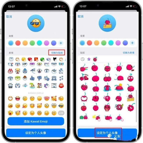 3、点击【切换为贴纸】选项,接着挑选贴纸作为头像内容,挑选完毕后,点击【设定为个人头像】,如此便完成操作。