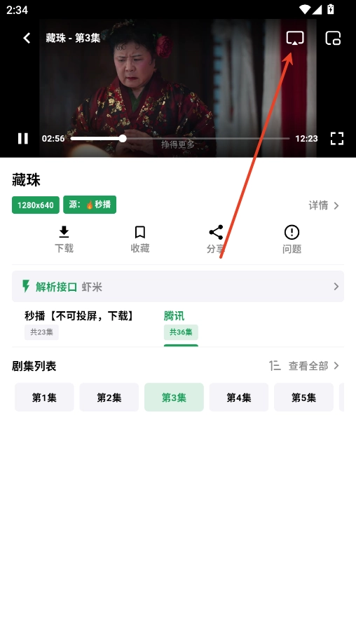 2.点击右上角TV投屏。