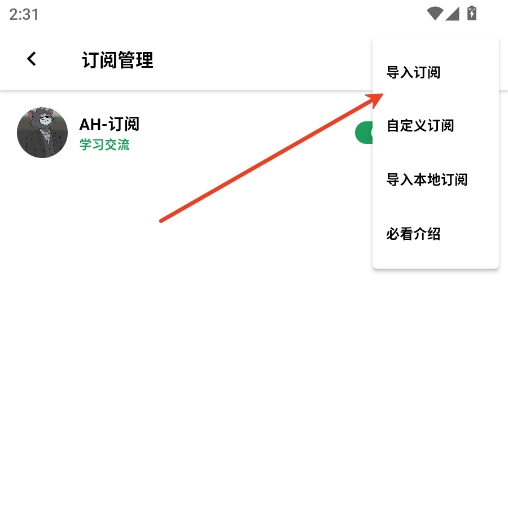 3.点击导入订阅。