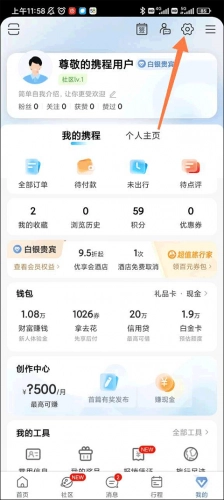 打开携程旅行应用后,点击底部导航栏的“我的”选项进入个人中心页面。在个人中心里,能看到众多与用户自身相关的功能选项,此时需要点击页面右上角的小齿轮形状图标,进入设置界面。