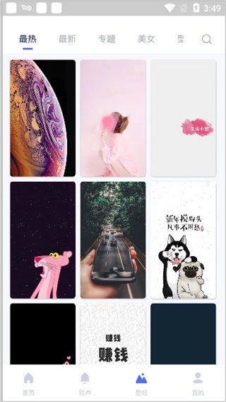 在“壁纸”中也是分为最新、最热、专题、美女等。