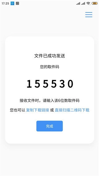 4、上传成功后会得到一个取件码
