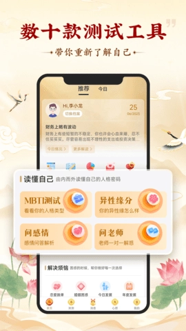 灵机妙算的个人报告依托专业知识与精细算法生成。借助心理测试、心理树洞等功能,它能更精准地洞察你的内心需求与困扰。这些报告有助于你加深自我认知,探寻解决问题的路径。在灵机妙算平台,你可与心理专家及情感婚姻达人在线交流,他们均经过专业培训,能为你提供专业的建议与解答。无论你遭遇情感或婚姻方面的问题,他们都会耐心倾听并给出适配的建议。与他们的沟通不仅能化解你的困惑,还能助力你提升情感智慧。