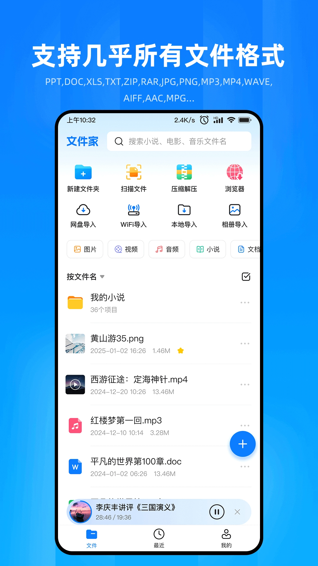 文件家是一款融合文件管理、音视频播放、文档阅读与扫描功能的综合性软件。它能有效提升用户处理文件的效率,带来流畅便捷的操作体验。借助其强大的功能整合,用户可在同一平台完成多项任务,畅享更高效的工作与学习模式。该软件兼容多种文件格式,保障用户在应对各类文件时都能游刃有余。