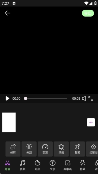 2、把相册里的一段视频导入进来,接着开展修剪、分割、调整速度、添加动画等操作;