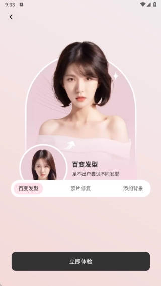 2、在百变发型页面,你可以点击“立即体验”,接着上传自己的图片,系统就能为你找到适合的发型。