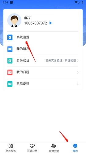 1.进入【我的】页面选择【系统设置】