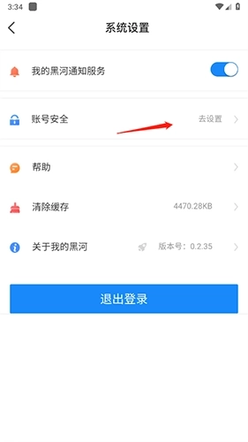 2.在设置菜单点击【账号安全】选项