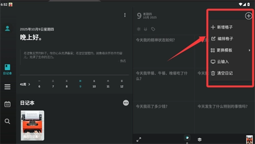 轻触右上角的加号按钮,即可展开所需功能,此时系统会呈现与目标内容相关的记录引导问题。