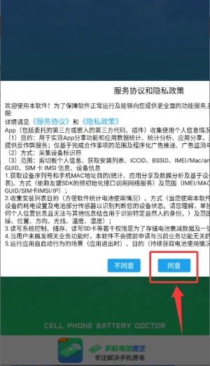 首次打开应用时,请在弹出的服务协议窗口中点击“同意”,即可进入主界面。