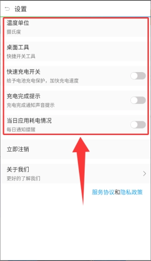 在设置页面可对温度单位等参数进行个性化调整。