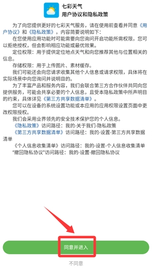 打开应用,仔细阅读用户协议和隐私政策,确认同意后点击进入。