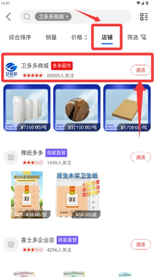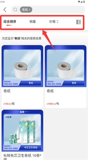 你可以在店里的搜索框中输入“卷纸”,然后根据价格、销量等条件进行排序和筛选。