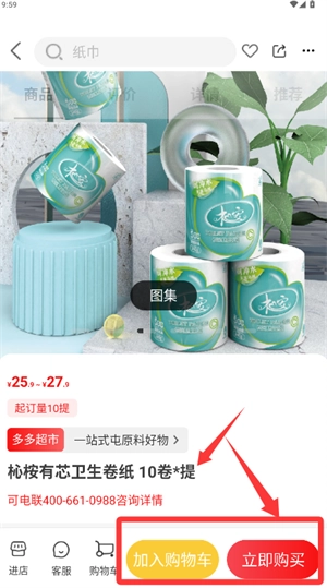 当您选定卫生卷纸这类心仪的商品后,既可以将其添加到购物车,也能够直接进行购买操作。