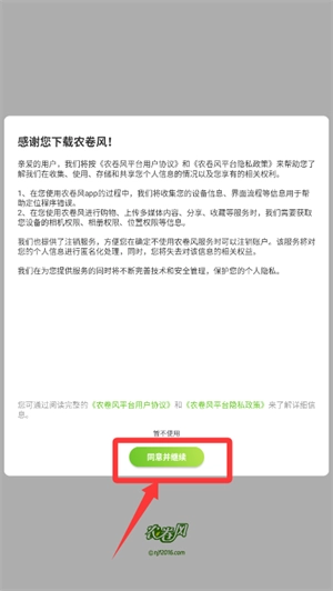首先阅读页面上的提示内容,确认无误后点击“同意并继续”按钮。