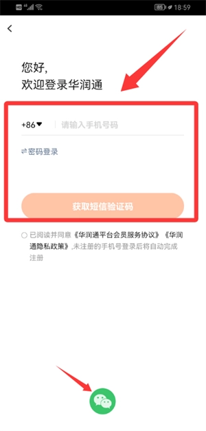 打开应用后,你可以选择通过手机号接收验证码登录,或者使用微信快捷登录的方式。