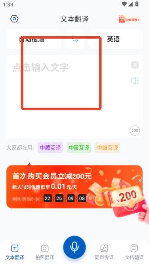 打开文本翻译界面后,先选定源语言和目标语言,接着输入或粘贴待转换的文字内容,最后点击翻译按钮,就能得到翻译结果,同时还可以进行朗读播放。